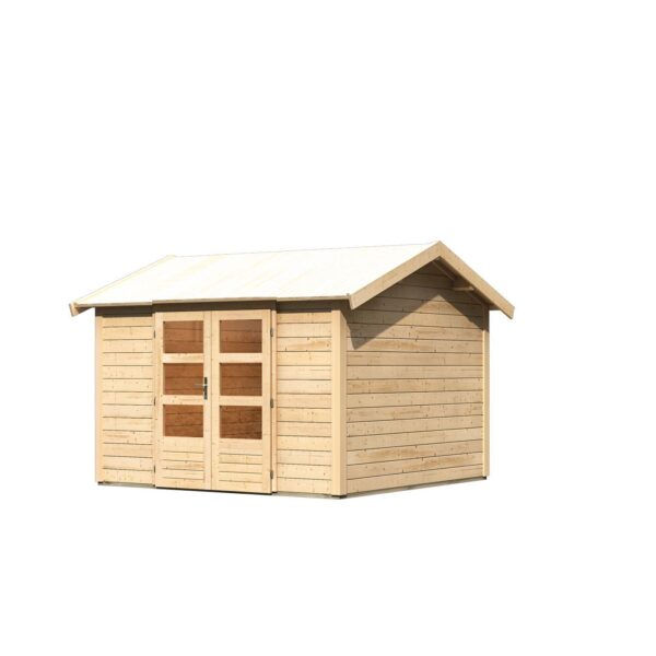 Robuuste Constructie: De wanden van de sauna zijn opgebouwd uit 28 mm rond profiel met tand- en groef en een handig plug-schroefsysteem voor een stevige en strakke constructie.