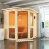Onze systeembouw sauna van 68 mm dikke wandelementen biedt u een optimale prijs-prestatieverhouding en tegelijkertijd optimale isolatiewaarden. Dankzij de constructie van geprefabriceerde wandelementen is uw nieuwe sauna zeer snel op te bouwen en biedt u pure ontspanning. De wandelementen bestaan uit een frame constructie van 42 mm dik kanthout waarin hoogwaardige minerale wolisolatie is aangebracht. Dit isolatiemateriaal wordt vervolgens bekleed met hoogwaardig Softline-profielhout van het beste Scandinavische sparrenhout en geeft dus geen indicatie welke kwaliteiten er onder de houten bekleding schuilgaan. In tegenstelling tot de 38 mm of 40 mm massief houten sauna’s zijn de achterkanten van onze 68 mm sauna’s niet zichtbaar. Net als de plafondelementen zijn deze alleen aan de binnenzijde bekleed met geprofileerd hout. Aan de buitenkant zit stevig hardboard. De sauna heeft een elegante en praktische vooringang.