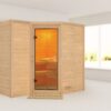 Geniet van de volledige sauna-ervaring en bespaar toch energie. Dat kan met onze 68 mm Bratislava systeemsauna en de plug-in 3,6 kW saunakachel. Dankzij de voorgemonteerde wandelementen is de sauna snel en eenvoudig op te bouwen. De 68 mm dikke elementen bestaan uit een frameconstructie, die aan de zichtzijde versterkt is met 12,5 mm dik speciaal Softline profielhout. Deze constructie zorgt voor een ideale isolatie en houdt de warmte perfect binnen. Optioneel is de Bratislava sauna verkrijgbaar met een dakrand inclusief drie LED-spots. Deze creëren niet alleen een prachtige sfeer in het buitengedeelte van de sauna, maar zetten ook vakkundig de toon. De buitenafmetingen bedragen 196 x 170 x 198 cm (B/D/H). Via een saunadeur heeft u toegang tot het grote interieur van de sauna. Hier kunt u zonder meerprijs kiezen uit vier varianten. Of het nu gaat om de thermisch geïsoleerde, energiebesparende versie, de heldere volledig glazen deur, de versie met een gebronsde volledig glazen deur of de moderne grafietkleurige deurversie. Er is hier zeker iets voor elke smaak. Om binnen in de sauna perfect te kunnen ontspannen, is hier 1 saunaligbank van massief espenhout geïnstalleerd. Het hout is bijzonder zacht en neemt minder warmte op. Dit zorgt voor een comfortabel zit- en liggevoel. U kunt kiezen uit drie varianten van de plug-in saunakachel. Eén met geïntegreerde bediening, één met een extern “Easy” bedieningsapparaat en een biologische combi-oven van 3,6 kW. Het bijzondere aan deze saunakachel is niet de veelzijdigheid, maar de verbinding. Voor de inbedrijfstelling wordt de oven met een stekker aangesloten op een standaard 230 volt stopcontact. Omdat hiervoor geen specialist nodig is, zijn er geen kosten voor een elektricien en een ombouw naar een 400 volt aansluiting. Geniet van de volledige sauna-ervaring en bespaar extra energie met de 68 mm Plug & Play Sauna Bratislava.