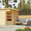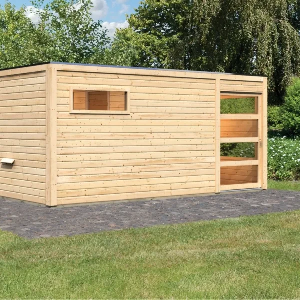 Wilt u een mooie zonnige dag afsluiten met een uitgebreide saunasessie? Of genieten van een winterse dag in de tuin met een ontspannend saunabad? Met de Hygge buitensauna heeft u vele mogelijkheden. Het saunahuis heeft een buitenmaat van 508 x 276 cm en bestaat uit 38 mm dikke massief houten planken van Noords sparrenhout . Het wordt gemonteerd met behulp van een plug-/schroefsysteem , wat een snelle en eenvoudige installatie mogelijk maakt.