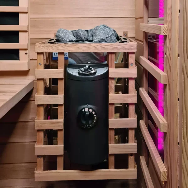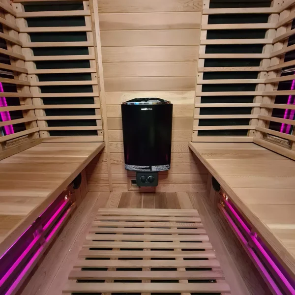 De Enjoy Life IR400+ heeft een bijzondere indeling. Deze sauna heeft de banken namelijk tegenover elkaar. Hierdoor creëer je extra veel ruimte. Ook de optionele Finse saunakachel is in deze infraroodcabine te plaatsen. De afmetingen van deze cabine zijn 180x120x200cm en er is ruimte voor maximaal 4 personen.