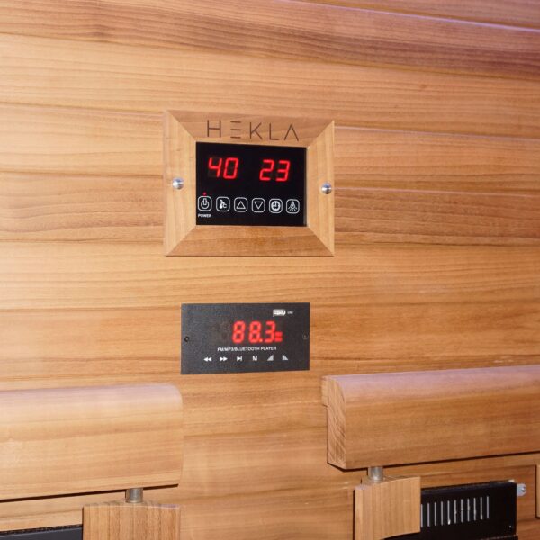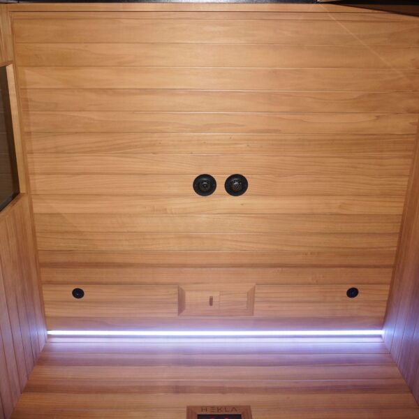 Eenvoudig te gebruiken, eenmaal geïnstalleerd, verwarmt de sauna snel en efficiënt en geeft u controle over de temperatuur van binnenuit. Interne bedieningspanelen stellen u ook in staat om de stemming te bepalen, van high vibe tot chill out, met chromotherapie LED-lichtopties en geïntegreerde luidsprekers, evenals USB- en Bluetooth-opties, om de sauna pod uw eigen persoonlijke heiligdom te maken.