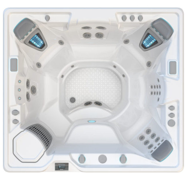 Het meest geavanceerde bedieningspaneel dat beschikbaar is, beschikt over een kleurenscherm met grote pictogrammen en intuïtieve menu’s waarmee u eenvoudig de spa-functies kunt aanpassen.