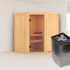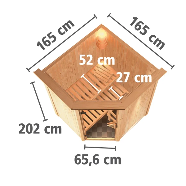 Met zijn buitenafmetingen van 151 cm x 151 cm biedt onze sauna voldoende ruimte voor alle eisen. De 2 ligbanken zijn binnen gemonteerd op vierkante balken, die vanwege de systeemconstructie niet flexibel in hoogte zijn. Het onderste ligbed kan onder de bovenste bank worden geschoven, waardoor het interieur ruimer aanvoelt en er ruimte vrijkomt bij het schoonmaken. Er wordt altijd een ovenbeschermrooster meegeleverd. Alleen geschikt voor particulier huishoudelijk gebruik.