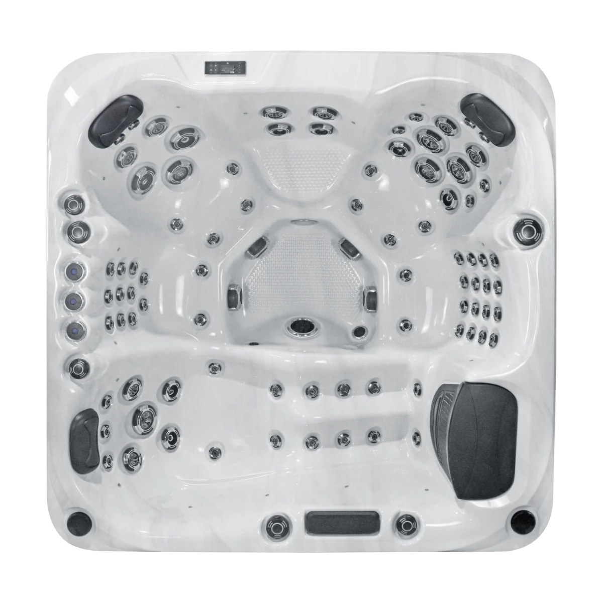 De Palma is een royale 6-persoons Spa met één liggedeelte en vijf comfortabele zitplaatsen. De 87 massagejets zorgen voor een diepe ontspanning van nek, rug en benen. Het moderne ontwerp en de ruime indeling maken dit model perfect voor gezinnen of iedereen die graag ontspant in gezelschap.