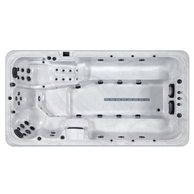 De Titan swimspa is de ultieme keuze voor wie ontspanning én fitness zoekt in een ruim en hoogwaardig ontwerp. De Titan biedt volop ruimte om te zwemmen, te sporten of te ontspannen. Met een bankachtige indeling met 9 zitplaatsen en 1 ligplaats biedt de spa comfortabel plaats aan maximaal 10 personen. Ideaal voor het hele gezin of voor serieuze fitnessliefhebbers, combineert de Titan swimspa een krachtige zwemstroom met luxe jacuzzi-functies. De 38 jets zorgen voor een dynamische en rustgevende hydrotherapie-ervaring. Of u nu tegen de stroom in zwemt, geniet van een ontspannend bad of lichte oefeningen doet zoals wandelen, de Titan biedt de perfecte omgeving voor iedereen. De Titan is gemaakt van hoogwaardig Superior Aristech Acryl en uitgerust met een ozonwaterzuiveringssysteem, waardoor hij is ontworpen voor duurzaamheid en eenvoudig onderhoud. Dankzij geavanceerde pomp- en verwarmingstechnologie is deze swimspa zowel energiezuinig als krachtig, waardoor u het beste van twee werelden krijgt: ontspanning en fitness in één luxe pakket.