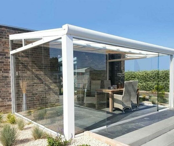 Met deze Climalux Horizon haal je een uitbreiding van je huis naar je tuin. Breidt met deze terrasoverkapping je eetkamer uit als buitenkeuken of serre. Doordat de veranda voorzien is van polycarbonaten of glazen dakplaten kan je altijd droog buiten zitten. Daarnaast kan je ervoor kiezen om de Climalux te voorzien van een glazen pui, verticale zonwering of windscherm.