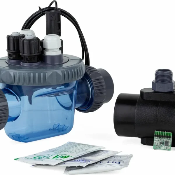 Complete set voor het opstarten en installeren van redox en pH optie op een Sugar Valley kast inclusief een flowkamer met 50mm aansluiting, waarop je de optioneel gekozen sensoren in kunt draaien. Ook de meegeleverde flowsensor kun je gemakkelijk monteren in de flowkamer.