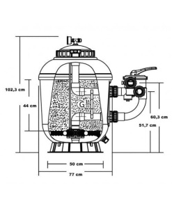 Met een Polyester Ø750 mm side-mount zandfilter 22 m3/u heeft u één van de meest sterke polyester zandfilters die er te krijgen zijn. De tank is gemaakt van polyester en heeft een bak van corrosievast materiaal. Dit model is geschikt voor een doorstroming van maximaal 22 m3/u of zwembaden tot 110 m3 inhoud. De 6-wegklep wordt standaard meegeleverd en beschikt over alle belangrijke functies om de waterkwaliteit optimaal te houden. Het polyester vat is ook bestand tegen UV-licht.